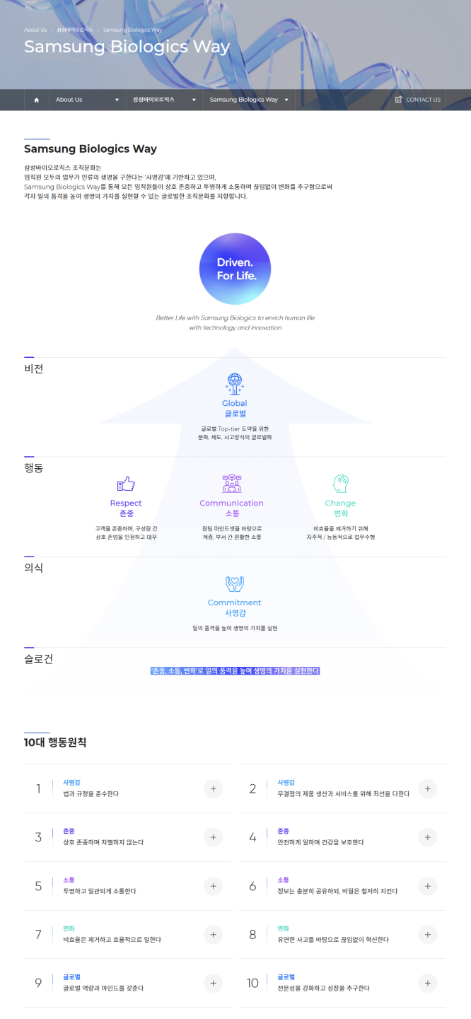 삼성바이오로직스 분석 자료: 핵심 가치, 비전, 인재상