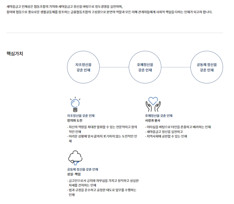 [새마을금고] 분석 자료 (핵심가치, 비전, 인재상, 각종 사업 등) 💡
