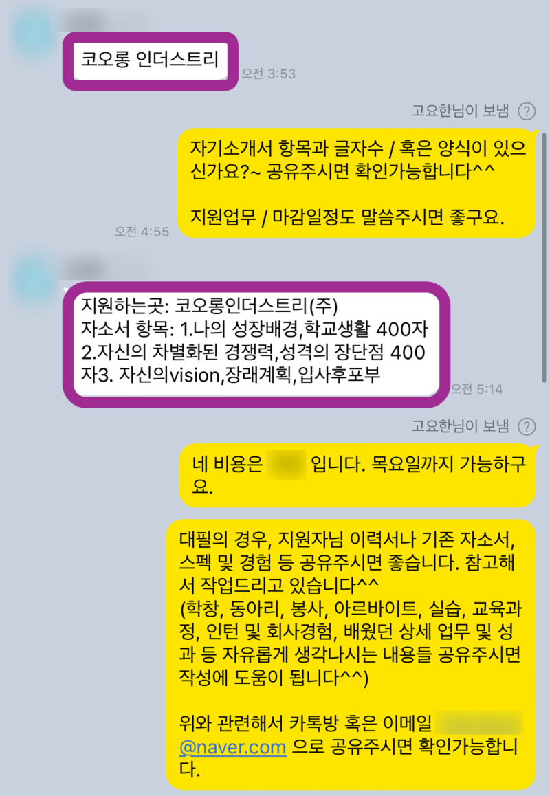 - ✅ 취업 자기소개서 첨삭 및 대행