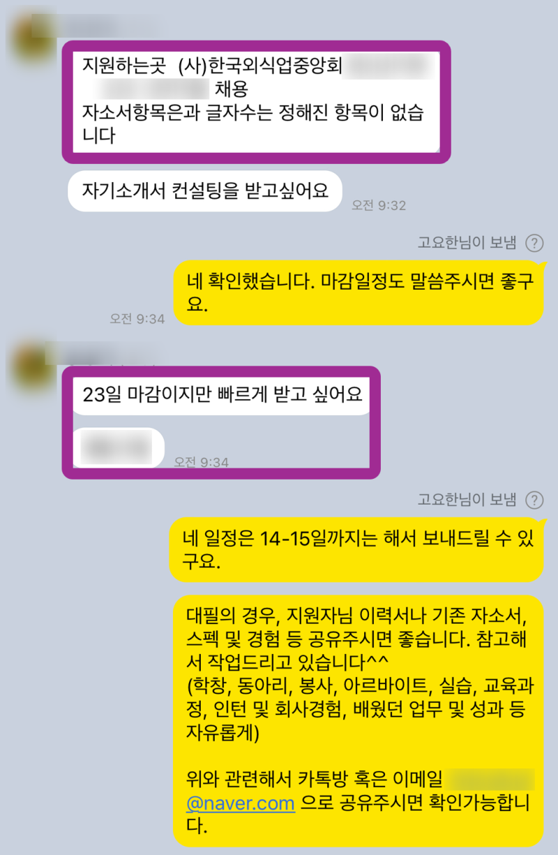 💡 자소서 첨삭/대필, 이렇게 진행했습니다!