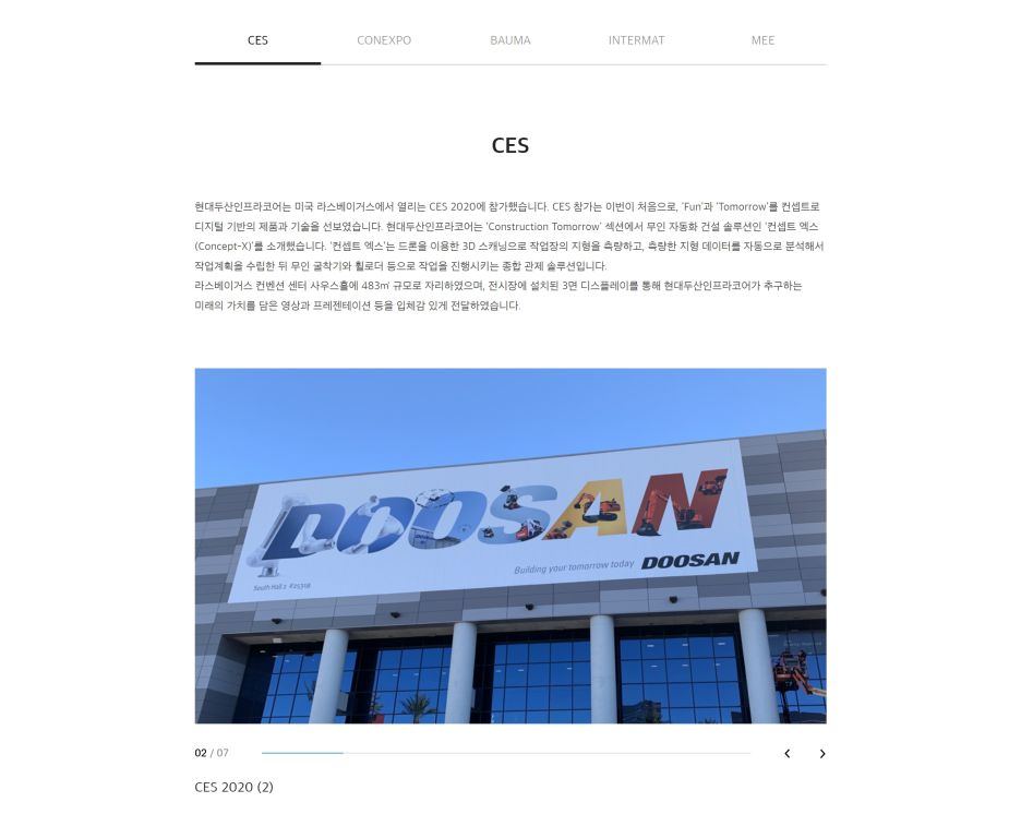 • 비전: ‘인류의 풍요로운 삶에 기여하는 글로벌 건설기계 및 엔진 선도 기업’