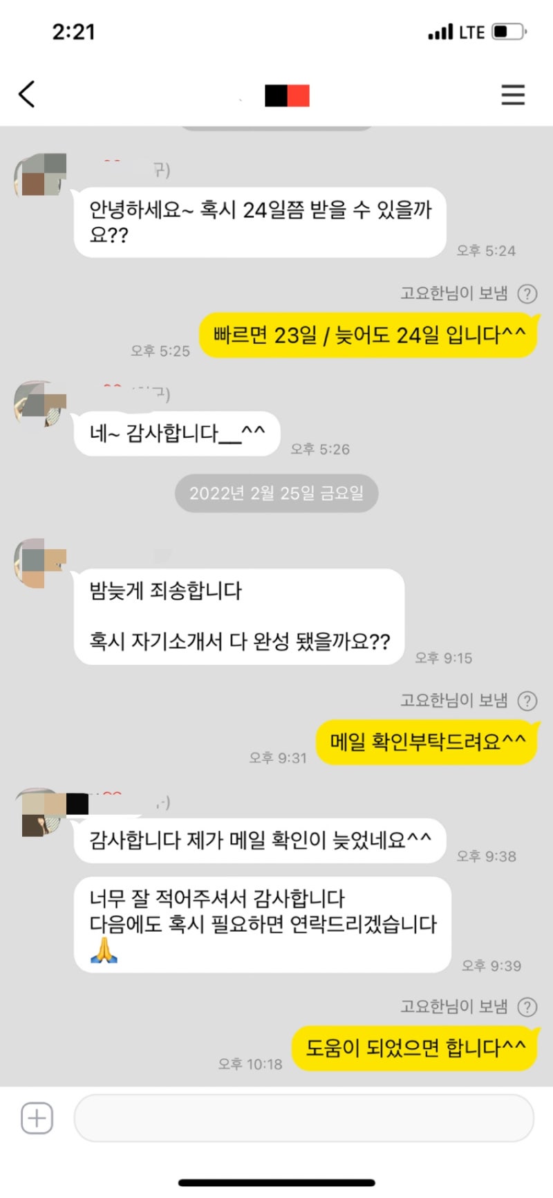 - >> 피드백 및 수정 (지원자님과 꼼꼼한 의견 조율)