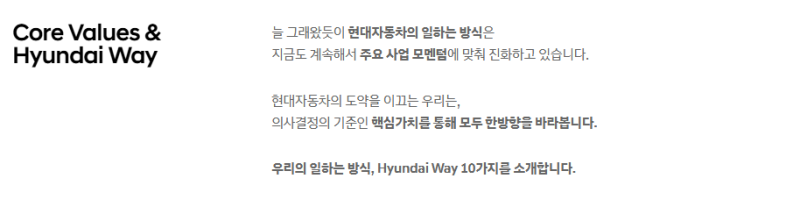 주요 사업 영역: 승용차/SUV/RV, 상용차, 미래 모빌리티(전기차, 수소차, 자율주행, UAM, 로보틱스 등), 스마트 팩토리 구축 등