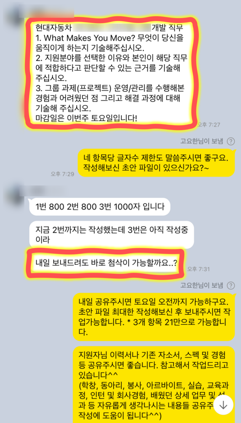 대기업 자소서 첨삭 대필 합격후기