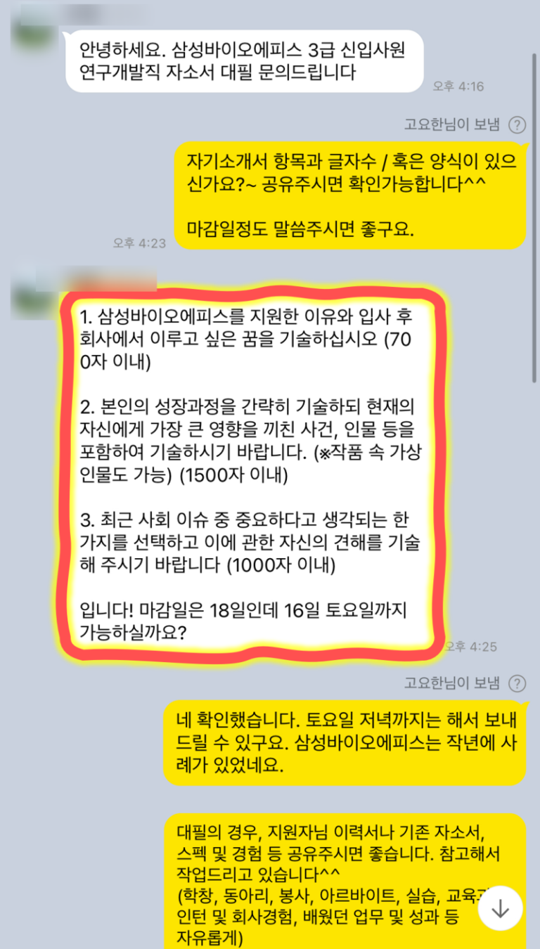 삼성바이오에피스 자소서 첨삭 대필 합격후기
