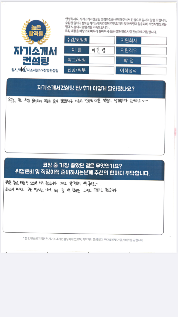 노벨리스코리아 기능직 채용, 서류합격률 3배! 자소서 대필 & 첨삭 합격 후기