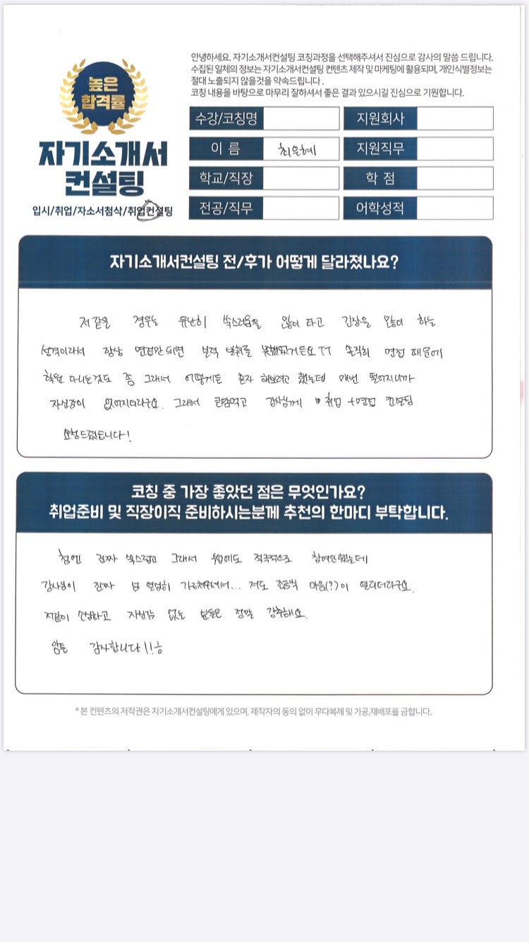 혁신테크 자유양식 자기소개서 첨삭/대행 서류합격 후기! 자소서 쓰는법 & 합격 전략 공개 ✨