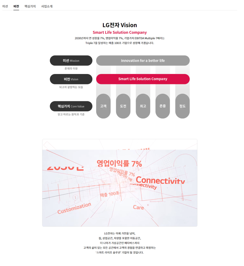 📊 LG전자 분석자료 (핵심가치, 비전, 인재상, 각종 사업 등)